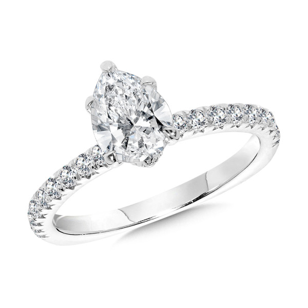 Straight Pear-Cut Diamond Engagement Ring w/ Chevron Collar